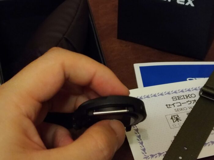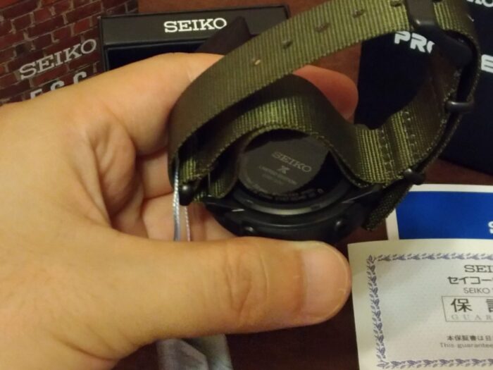 NATOストラップを外すとケースバックがハッキリ見えますね。