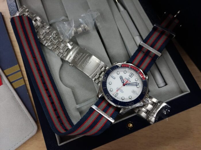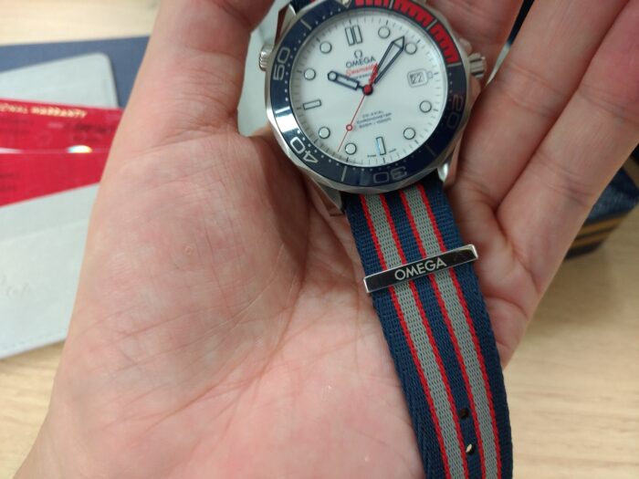 NATOストラップもOMEGAの刻印付きでテンション上がりますね。