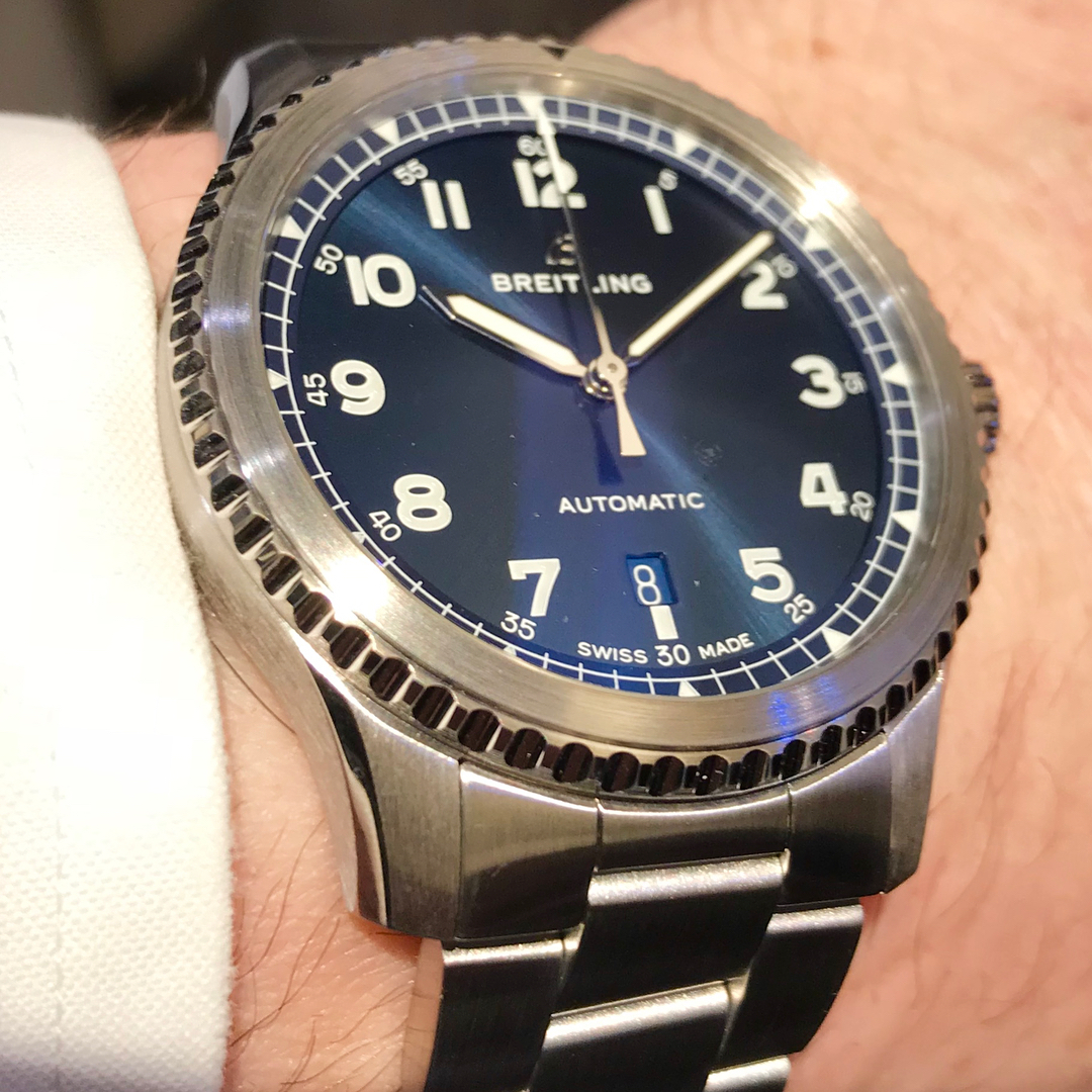 ナビタイマー8オートマチックだそうで3針自動巻きモデル。