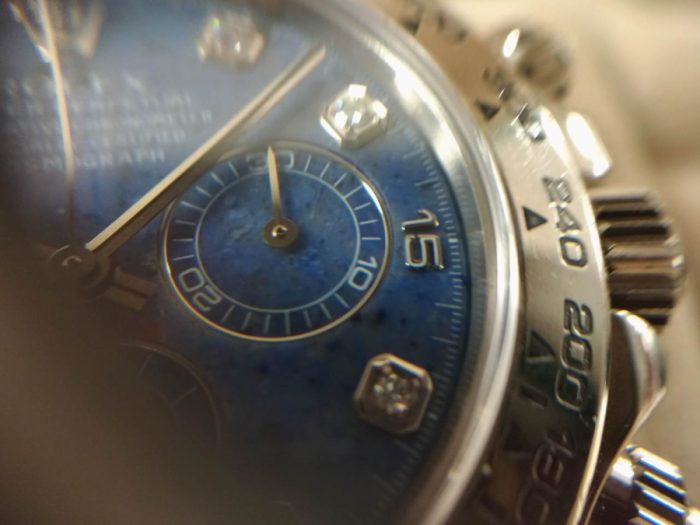 ロレックス コスモグラフ・デイトナのレアダイアル「ソーダライトブルー」。