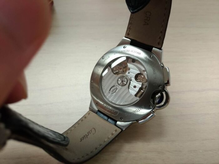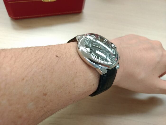 カルティエ自体の人気に陰りが見えるように、このバロンブルークロノグラフもさほど出回りが多いモデルでは無いかも知れません。