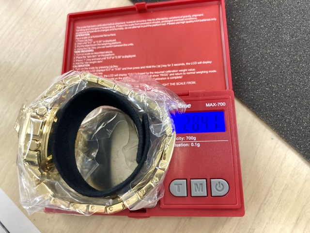 パッと見が似ているオーデマピゲのロイヤルオークの金無垢(18K ピンクゴールド)15400OR.OO.1220OR.01の重量は約250グラムですので、金無垢G-SHOCK G-D5000-9JR は更に50グラムも重いのです。