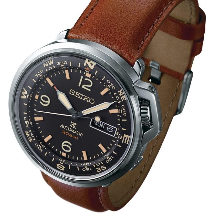 ケースサイド2時位置にクラウンのある、特徴的なデザインが目を引くプロスペックス フィールドウォッチ、アウトドア用のカテゴリでしょうか。