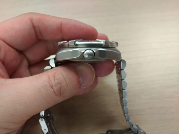 リューズトップにはタグホイヤーマーク。