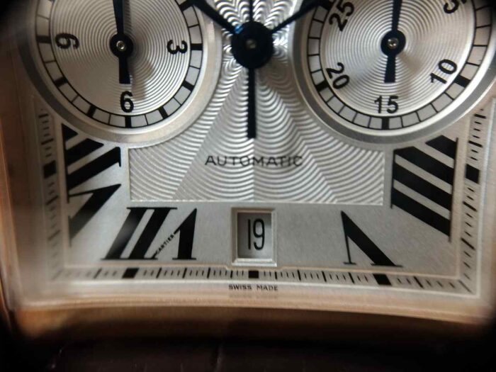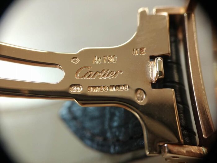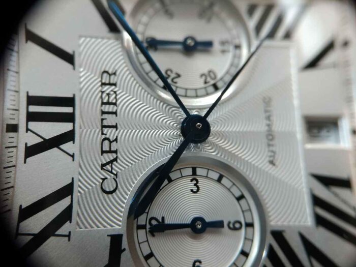 カルティエお得意のフランケ文字盤(ギョーシェ)。