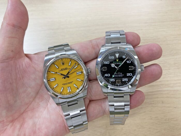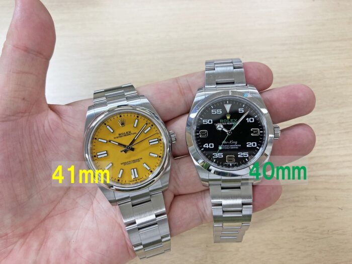 文字盤の大きさ、ブレスレットの幅、ベゼルの厚みなどの違いで、印象がかなり異なります。