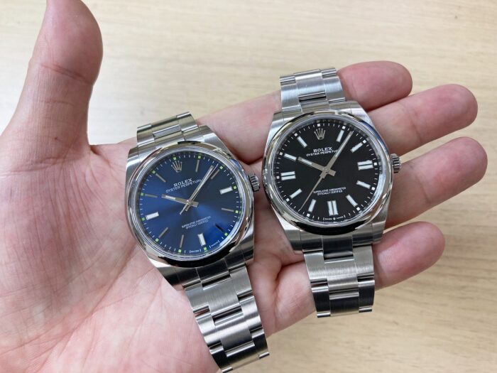 124300 オイスターパーペチュアル41は、文字盤のカラーリングにばかり目が行きますが、41mmと言うサイズにも注目です。