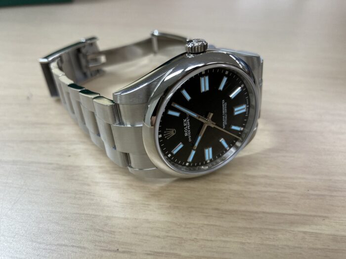 ロレックス 124300 オイスターパーペチュアル 41mm ブライトブラック文字盤 Cal.3230でした。