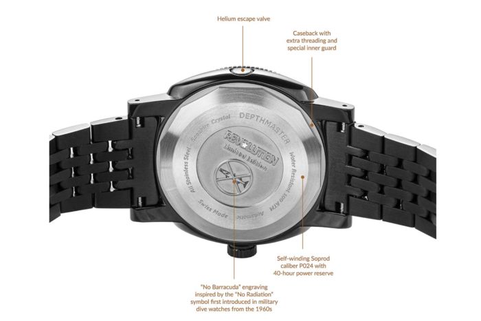 あとは、この獣に名前をつけるだけです。バラクーダは光り輝くものに惹かれるという話からヒントを得て、この完璧にマットなデプスマスターを「No Barracuda」と名付け、カスタムケースバックのエングレーヴィングで正式なものとしました。