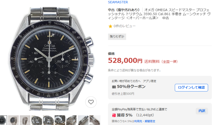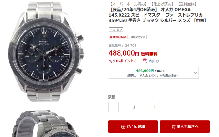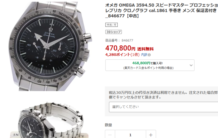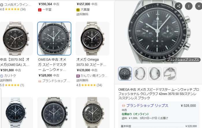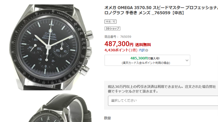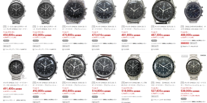 楽天市場でオメガ スピードマスターを検索し並べなおし。