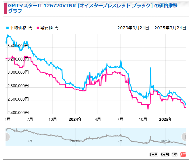 「2025年3月 ロレックス 人気モデルの相場をチェック!GMTマスターII レフティー 126720VTNR」でした。