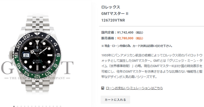 定期的にチェックしている人気モデルの相場を追うシリーズから、2022年に登場した左利き用のGMTマスターII 126720VTNR をチェックしていきます。