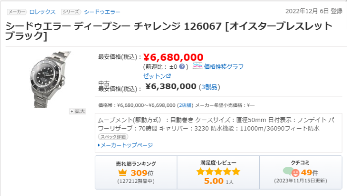 価格ドットコム 新品未使用品の最安値は668万円。
