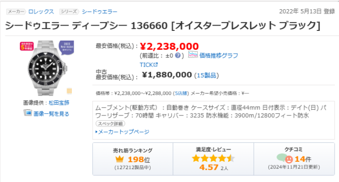 人気モデルの相場を追うシリーズから、今回は2022年の新作ディープシー136660(44mm)と、同じく2022年末に登場したディープシーチャレンジ126067(50mm)を見ていきます。