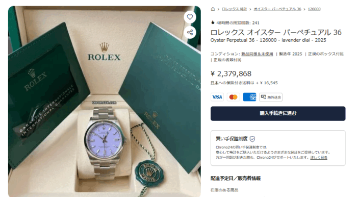 新型となる134300オイスター パーペチュアル 41が正規店に入荷しているようで、さっそく転売されております。