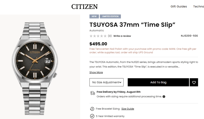 「【2025年新作】シチズン “タイムスリップ” NJ0200-50E ツヨサ 37mm オートマチック 8000本限定」でした。