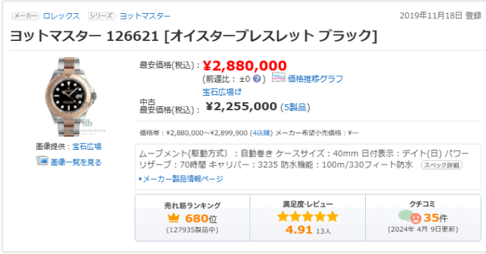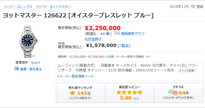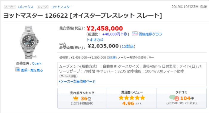 全体的に、ヨットマスター40はモデルや文字盤色によって動きが異なり、同じリファレンスでも価格差がはっきり出ているのが面白いところです。