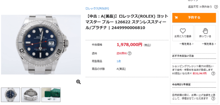 中古は中野ブロードウェイのかめ吉さんで2023年印が約239万円。