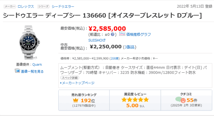 2025年8月 ロレックス人気モデルの相場を追う!ディープシー 136660 ディープシーチャレンジ 126067