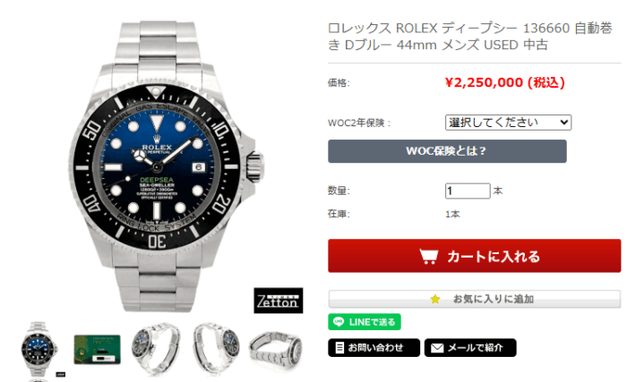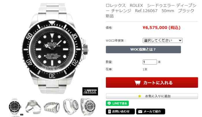 ゼットンさんには、シードゥエラーの表記があるブラックの中古で2023年の保証書付きモデルが約180万円。