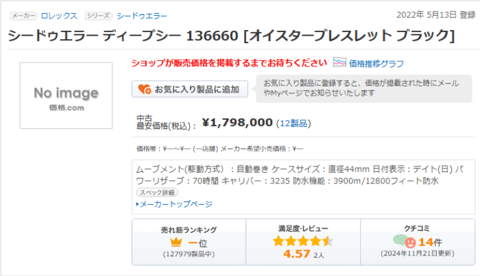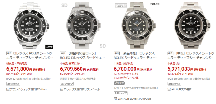 掲載店舗がちゃんと気付いているのかは不明ですが、シードゥエラーの表記があろうとなかろうと相場は変わりません。