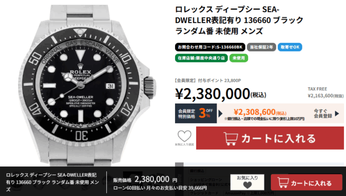 一方で、ディープシーチャレンジはセカンドマーケットにようやく掲載が増え始め、価格帯は650~680万円前後で落ち着きつつあるようです。
