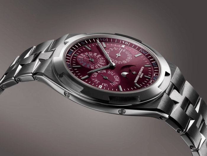 バーガンディ文字盤とホワイトゴールドの組み合わせはクラシカルでありながらもモダン。