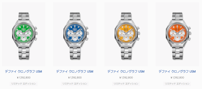 USMのシグネチャーカラーであるグリーン・ブルー・イエロー・オレンジを文字盤に落とし込んだモデルは、どれも非常にポップで存在感抜群。しかも各色わずか60本という超限定。国内正規定価は約160万円と決して安くはありませんが、家具ファンと時計ファン双方に刺さる一本となりそうです。