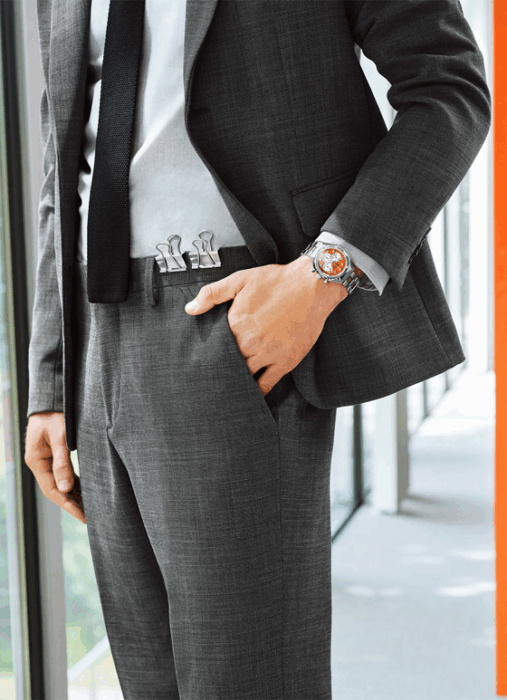 時代を超越する品質、洗練された美学、そして意図が込められた機能性の追求。「デファイ クロノグラフ USM」はゼニスとUSMが共有する価値観に敬意を表しています。1960年代から着想を得たステンレススチール製ウォッチは、USM ピュアオレンジの文字盤と、わずかに重なり合うシルバーの3つのクロノグラフカウンターが、装いにエネルギッシュな魅力をもたらします。
