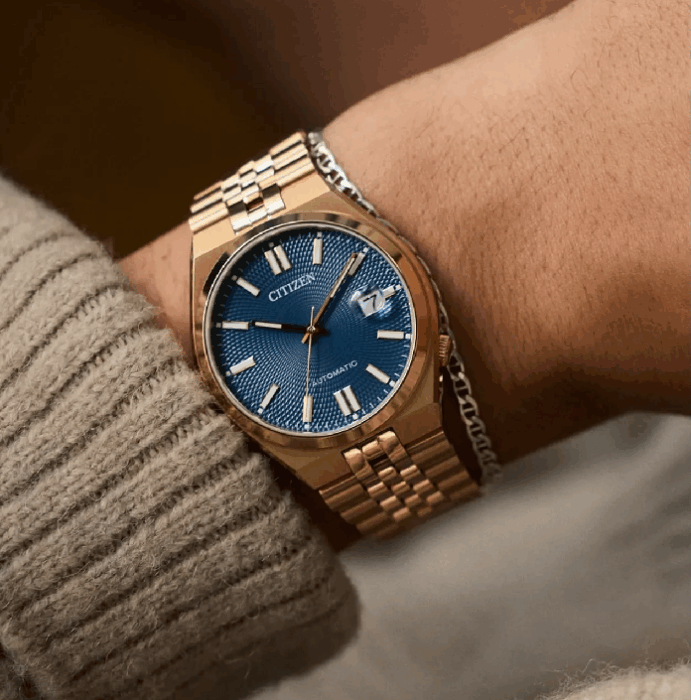 最新のTSUYOSA 60は、最先端のスポーツスタイルを手首にお届けします。汎用性の高い40mmケースに洗練されたデザインが組み合わさり、ローズゴールドトーンのステンレススチールケースとシームレスに一体化した5リンクブレスレットが強烈な印象を与えます。反射防止加工のサファイアクリスタルガラスの下には、精巧に機械加工されたサンレイブルーの文字盤が配され、3時位置に日付表示窓とゴールドトーンのディテールが目を惹く美しさを添えています。自動巻きムーブメントを搭載し、最大50mの防水性能と60時間のパワーリザーブを誇る洗練されたタイムピースは、仕事、遊び、そしてその間のあらゆるシーンで活躍する、デイリーユースに最適な逸品です。キャリバー8310。