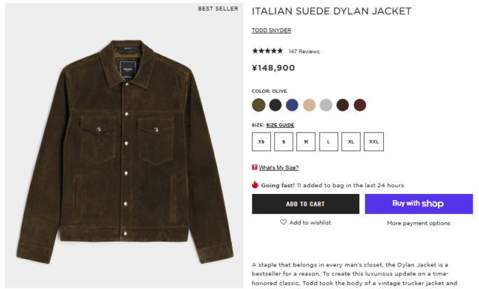 トッドスナイダーは高級なアメカジ的なアパレルメーカーで、スエードのディランジャケットは人気モデルだそうです。