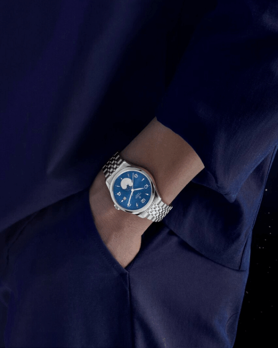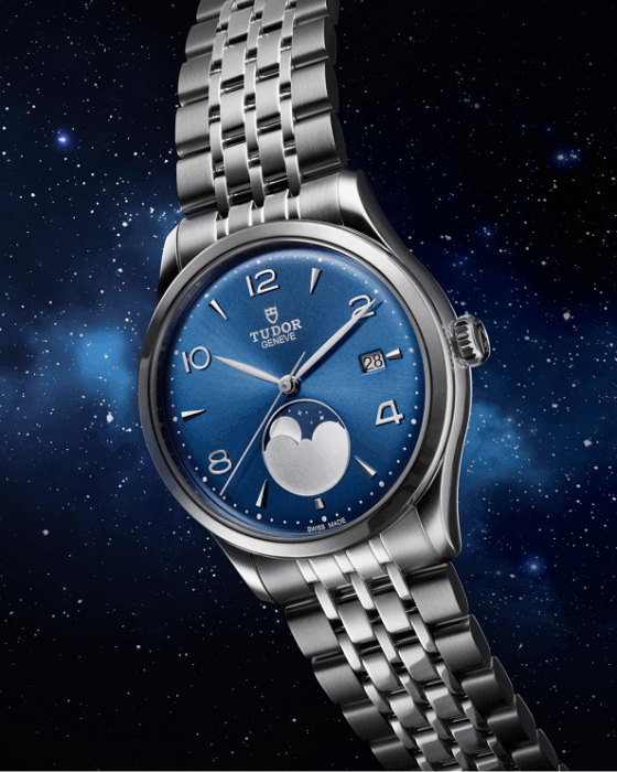 初のムーンフェイズモデルを実現するにあたり、チューダーはブランドの創造力を結集した。常に芸術性と技術の限界を押し広げてきたブランドスピリットこそ、このマイルストーンにふさわしい原動力である。チューダーのデザインチームが丹念に取り組み、受け継がれる感性に新たな解釈を加えてこの時計に吹き込んだ。その結果生まれたのは、夜空を照らす満月のように普遍的な魅力を放つタイムピース。