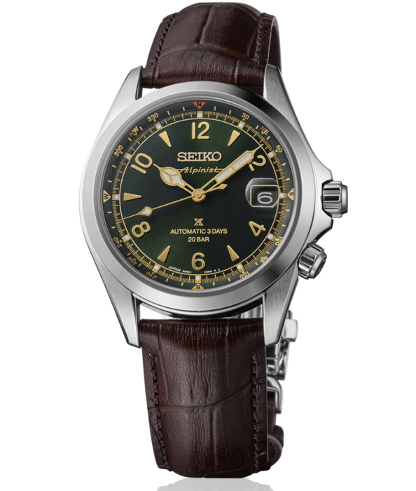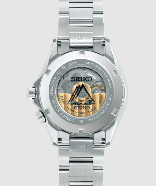 1959年に誕生した初代ローレル・アルピニストの伝統を受け継ぎ、「Alpinist」のロゴデザインをダイヤル12時位置のSeikoロゴの下にレイアウト。ダイヤルカラーには、印象的なグリーンのカラーリングを採用しています。