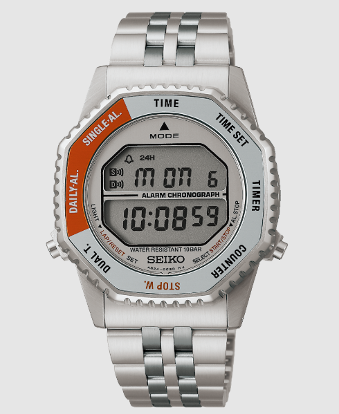 八角形の形状が面白いデジタルクォーツウォッチです。