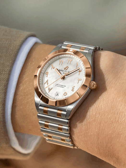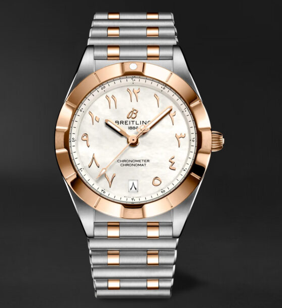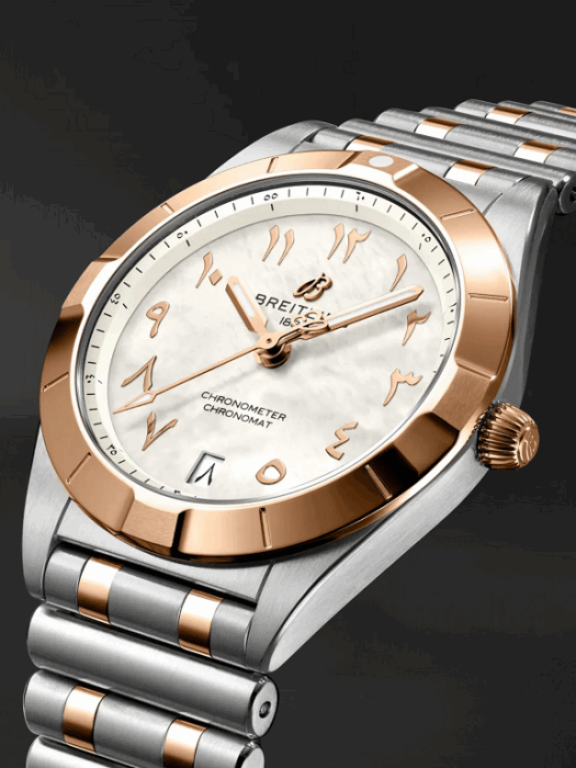 女性向けにデザインされたブライトリング初のクロノマット「クロノマット 32」にシェル製のアラビアダイヤルが登場。