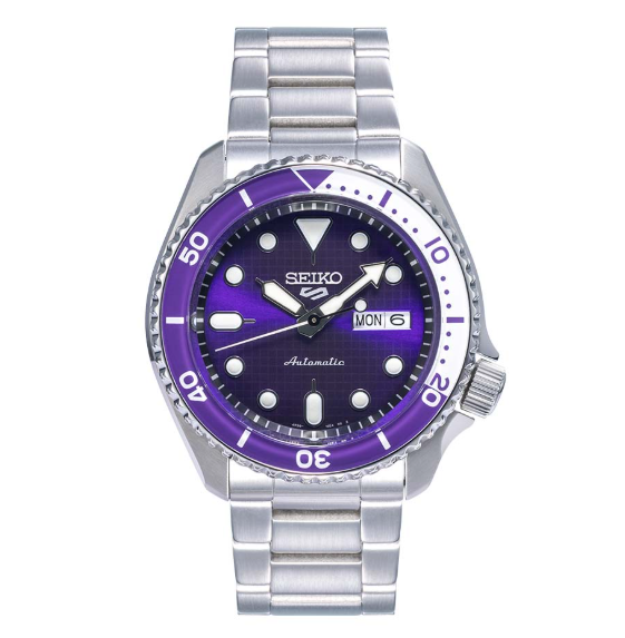 ウィンタースポーツのスピリットにインスパイアされたセイコー 5スポーツの最新モデルは、印象的なパープルとウォームブラウンの文字盤、角張ったインデックス、そして視認性の高いルミブライト針とインデックスを通して、スキーとスノーボードのエネルギーを表現しています。