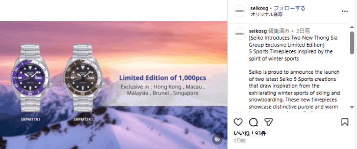 いつものトンシア エクスクルーシブ地域 (シンガポール、香港、マカオ、マレーシア、ブルネイ 通城集團代理地區獨家限量版) のセイコー ブティックで各1000本ずつ販売されます。