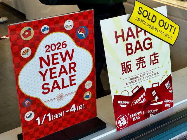 今年もガラス窓に福袋のラインナップが掲載されていますね。