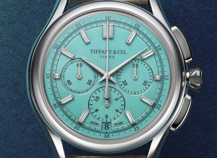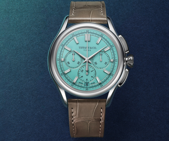 こちらは「ウォッチメイキング レガシー」として4つのテーマのうちの1つから、”ティファニーブルー” が美しいティファニー タイマー プラチナ クロノグラフだそうです。