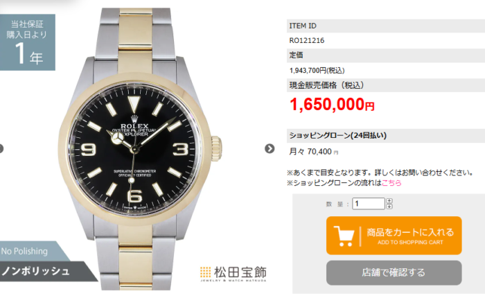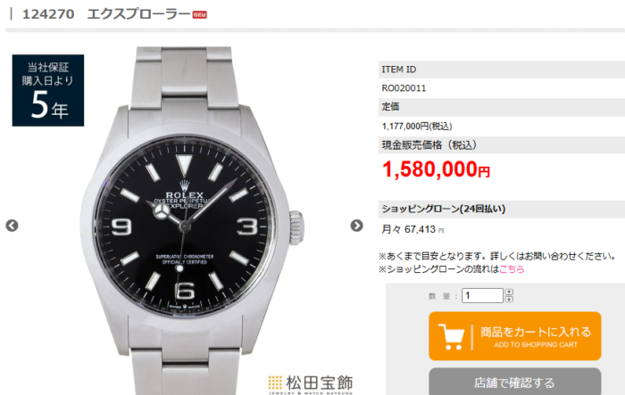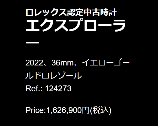 今回のタイトル通りですが「ロレックス認定中古時計 エクスプローラー 124273 公式なのに定価以下」なんです。
