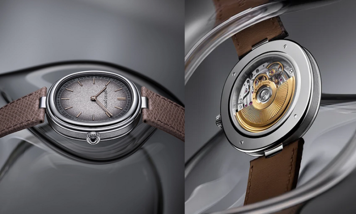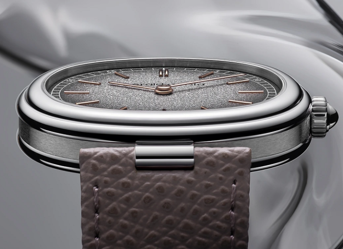 ホワイトゴールドのクッション型ケースに収められたシルバーの色合いのグレインダイヤルは、分目盛りの印象的な背景を提供し、ローズゴールドの 4N 針とインデックスは手首の芸術として日常のエレガンスを演出します。