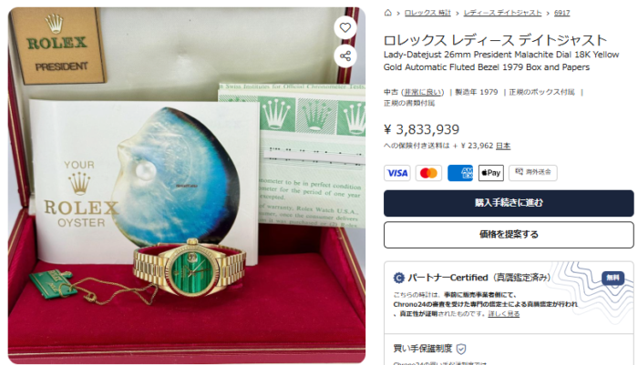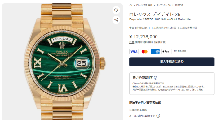 現行機でもマラカイト文字盤のデイデイトがリリースされ話題ですが、けっこう前からこの石は使われていて、ここにきて何でもかんでも高騰中。