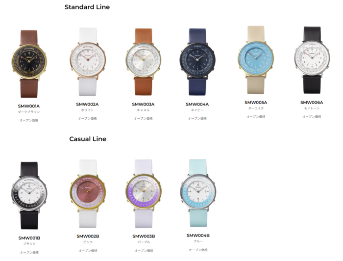 文字板のデザインはきっちりとした印象のスタンダードライン、 ポップな印象で普段遣いにも便利なカジュアルラインの2種類。