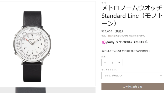 メトロノームウオッチStandard Lineのお値段は28,600円と非常にお買い求めやすいのもポイントですね。