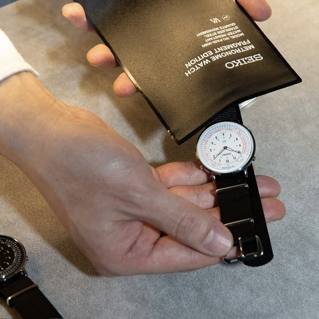 「セイコー」、「FRAGMENT」、「V.A.」のトリプルコラボレーションによるメトロノームウォッチ