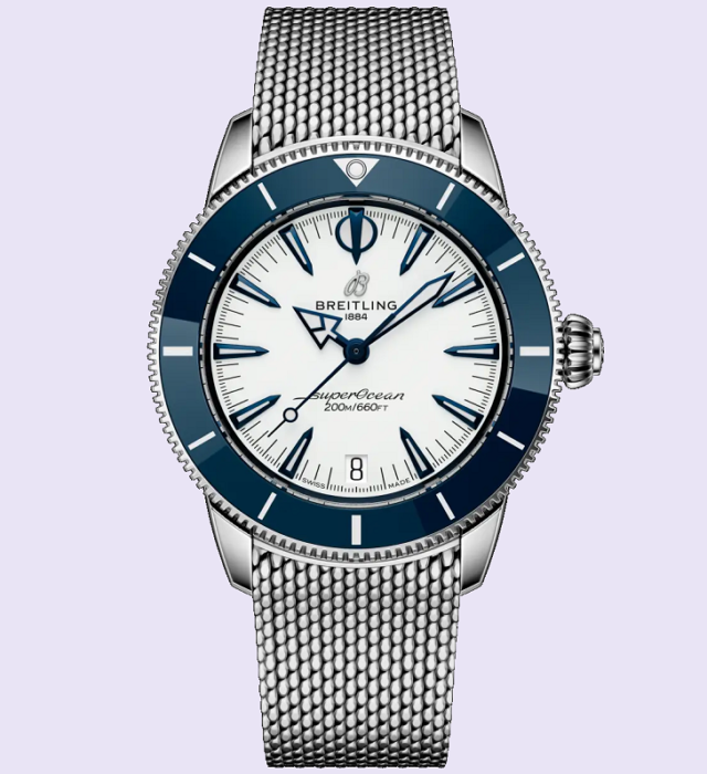 波間とウォーターフロントの間を移動するために作られました。スーパーオーシャン ヘリテージは、ありきたりのダイビングウォッチではありません。これまでも、ありきたりのウォッチではありませんでした。ブライトリングが1957年に初めて発表したとき、この時計は当時の他のダイバーズウォッチとは異なる方向性を取りました。Ref. 1004(洗練された時刻表示のみの時計)とRef. 807(世界初の専用ダイバーズクロノグラフ)は、水中世界の探検だけでなく、その姿を美しく見せることにも重点を置いていました。槍と矢のような針、陽極酸化処理された回転ベゼル、そして自然に洗練されたプロポーションは、海と海の景色を生きるスタイリッシュな冒険家たちのお気に入りとなりました。今日でも、その哲学はスーパーオーシャン ヘリテージの中核を成しています。1950年代の魂を受け継ぎながら、現代向けにデザインされています。最新のスーパーオーシャン ヘリテージは、オリジナルの独自性を生み出したすべての要素を基に構築され、さらに磨きをかけています。このコレクションには、ブライトリング初の自社製3針キャリバーであるB31自動巻きムーブメントが搭載されています。セラミックインレイのベゼルが優れた耐傷性を実現し、一体型のメッシュメタルまたはメッシュラバーブレスレットはケースにぴったりとフィットし、フォールディングクラスプでしっかりと固定することで、すっきりとした防水性を実現しています。6時位置に控えめな日付表示窓と、オリジナルのシグネチャーである矢印型の時針と槍型の分針が、水面上でも水中でも優れた視認性とバランスを確保しています。