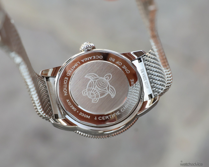 それぞれケースバックにはウミガメが描かれています(42mmはシースルーバック、36mmは透けてません。