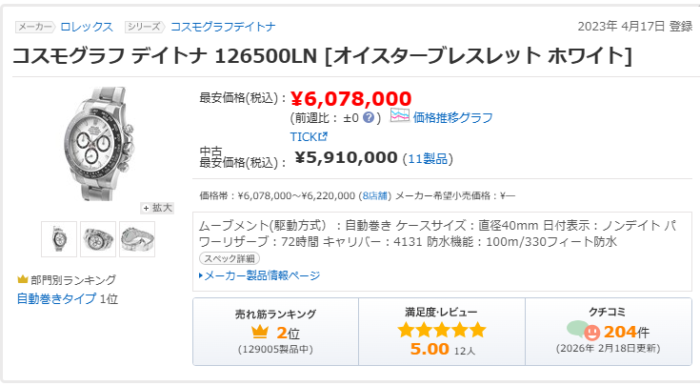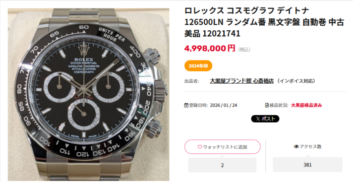 2026年2月 ロレックス 新型デイトナ 126500LN 人気モデルの相場をチェック!