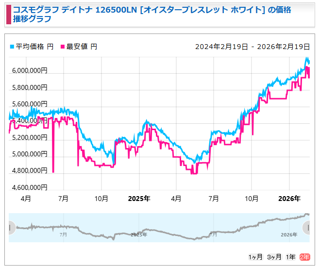 「2026年2月 ロレックス 新型デイトナ 126500LN 人気モデルの相場をチェック!」でした。