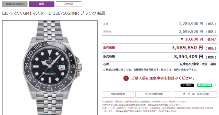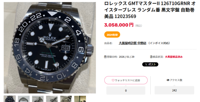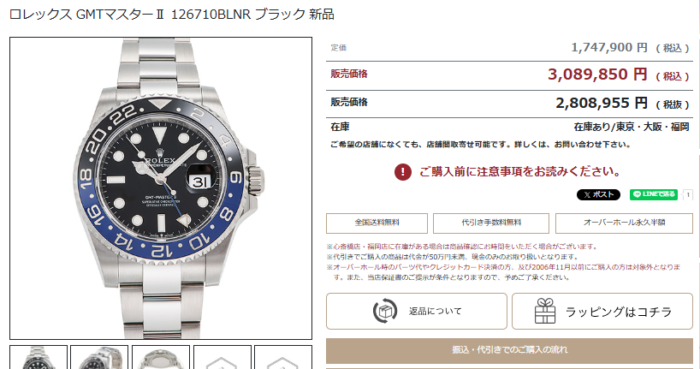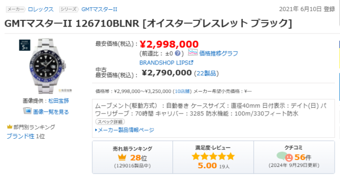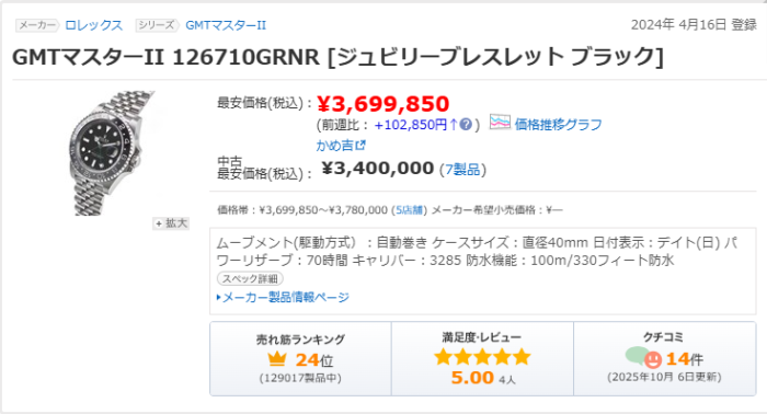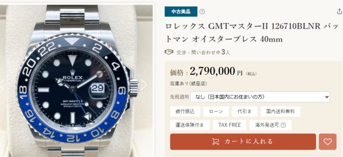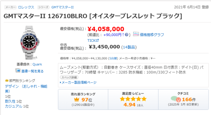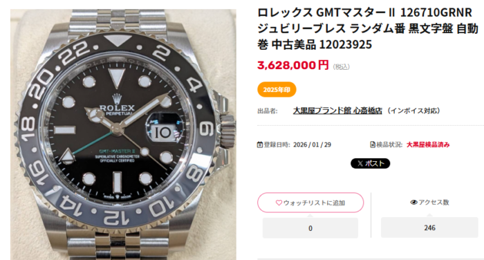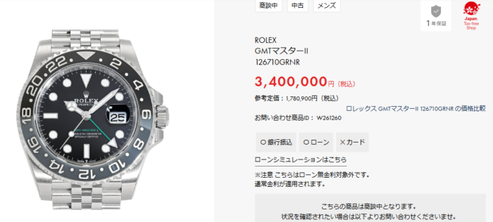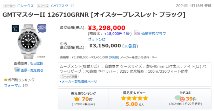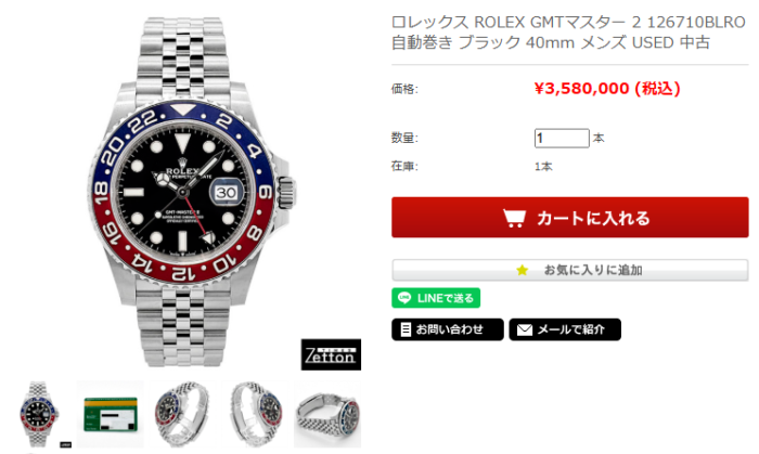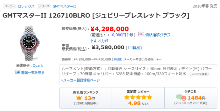 定期的にチェックしている人気モデルの相場を追うシリーズから、 GMTマスターII スティール製右利きモデル 126710 現行機3種をチェックしていきます。126720VTNRはまた次回。